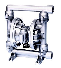 氣動隔膜泵故障排除: 1.拆卸氣動隔膜泵之前,將左右邊的氣室及液室分別標(biāo)上記號以助于后續(xù)的再組裝動作。 2.使用扳手將連接出口管與液室的小卡箍松開,拆除出口管即可看到閥球和閥座,拿出球和座并檢查泵的其他備件有磨損、化學(xué)腐蝕、裂痕等現(xiàn)象。 3.使用扳手將連接進(jìn)口管與液室的小卡箍松開,拆除出口管即可看到閥球和閥座,拿出球和座并檢查泵的其他備件有磨損、化學(xué)腐蝕、裂痕等現(xiàn)象。 4.使用扳手將液室和泵的中間體分開,拆除液室即可看到膜片及膜片夾板。 5.使用工具或扳手固定膜片外夾板左右邊緣,將隔膜裝置與中間體分開。然后順時針旋轉(zhuǎn)松開隔膜裝置。移出膜片外夾板后,將軸從中間體取出。 6.使用夾鉗(加墊木板)將軸與膜片裝置分開,檢查軸、夾板、膜片是否損壞和腐蝕現(xiàn)象。 7.安裝從步驟6到步驟1 氣動隔膜泵有動作,但是流量小或完全沒有液體流出: 1.檢查泵的氣穴現(xiàn)象,降低泵的速度讓液體進(jìn)入液室。 2.檢查閥球是否卡住。如果操作液體與泵的彈性體不相容,彈性體會有膨脹的現(xiàn)象發(fā)生。請更換適當(dāng)材質(zhì)的彈性體。 3.檢查泵入口的接頭是否完全鎖緊不漏,尤其是入口端閥球附近的卡箍需鎖緊。 泵的空氣閥結(jié)冰: 檢查壓縮空氣含水量是否過高,安裝空氣干燥設(shè)備 泵的出口有氣泡產(chǎn)生: 檢查膜片是否破裂,檢查卡箍是否鎖緊,尤其是入口管卡箍。 產(chǎn)品自空氣排放口流出: 檢查膜片是否破裂,檢查膜片及內(nèi)外夾板在軸上是否夾緊 閥發(fā)出嘎嘎聲:增加出口或入口揚(yáng)程。 泵拆卸及再組裝指南: 警告:在修氣動隔膜泵之前,需先將空氣來源配管從氣動隔膜泵拆除,并且將氣動隔膜泵中的空氣壓力排放掉。拆除所有連接氣動隔膜泵的出入口的管線,然后將泵內(nèi)的流體排放到適當(dāng)?shù)娜萜鲀?nèi)。戴防護(hù)帽、眼鏡、手套。 泵沒有動作或運(yùn)作很慢: 1.檢查空氣入口端的濾網(wǎng)或空氣過濾裝置是否有雜質(zhì)。 2.檢查空氣閥是否卡住,用清潔液清洗空氣閥。 3.檢查空氣閥是否磨損,必要時更換新的零件。 4.檢查中心體的密封零件狀況,如果嚴(yán)重磨損,則無法達(dá)到密封效果,而且空氣會從空氣出口端排掉。由于其特別構(gòu)造,請只使用GLYD圈。 5.檢查空氣閥中的活塞活動是否正常。 6.檢查潤滑油的種類。添加的潤滑油如果高于建議用油的粘度,則活塞可能卡住或運(yùn)作不正常。建議使用輕薄及抗凍的潤滑油。(ISO等級15/5WT的抗凍油) QBY鋁合金氣動隔膜泵相關(guān)資料