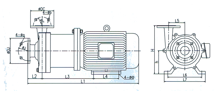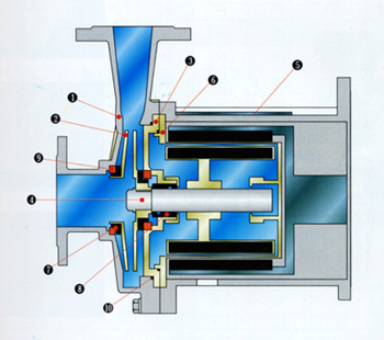 CQ型不銹鋼磁力泵結(jié)構(gòu)簡圖: