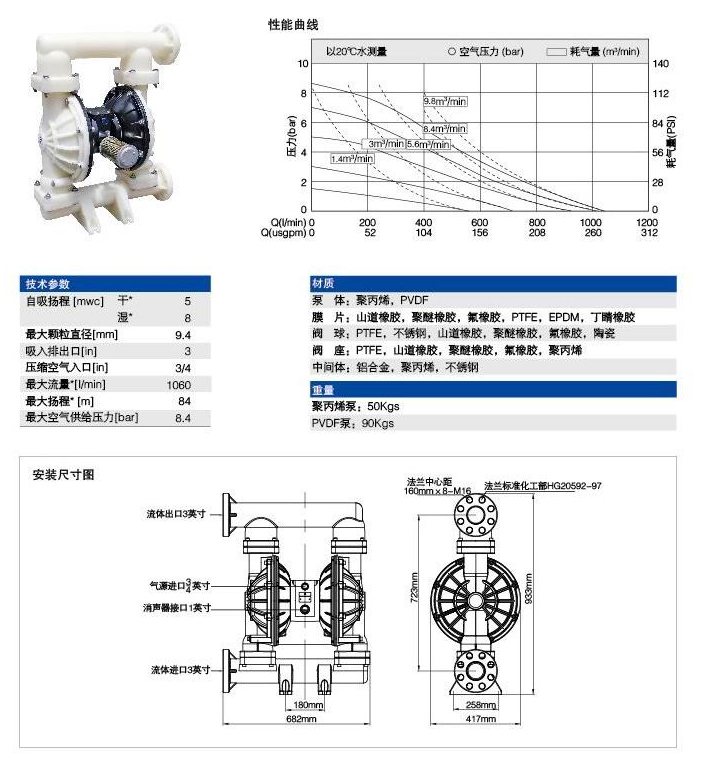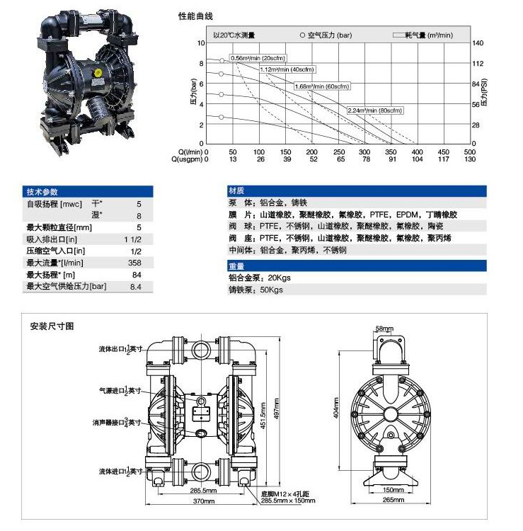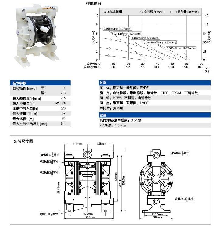 MQMK-50型氣動隔膜泵參數(shù)