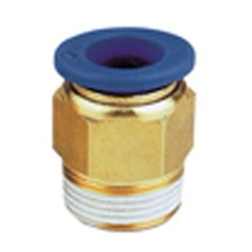 另一種接頭如圖所示,氣動快速接頭。次使用快速接頭,不會用?下面讓民泉教你如何使用快速接頭與氣管連接。將接頭藍色部分按下,插入與之匹配的氣管,松手即可。氣管會卡在接頭里面,十分快捷方便。