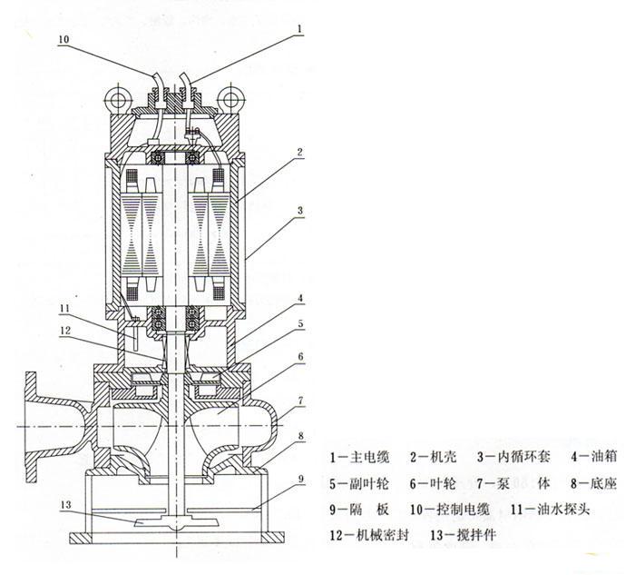 JYWQ攪勻式潛污泵和WQ潛污泵比較 WQ潛污泵是一款使用廣泛的污水泵產(chǎn)品,該產(chǎn)品結構緊湊、占地面積小,因為直接潛入液下工作,無需建造專門的泵房用來安裝,大大減少使用成本。WQ潛污泵連續(xù)運轉時間長,不存在汽蝕破壞及灌引水等問題,簡單而實用。 JYWQ污水泵和WQ污水泵相比,在軸的底部多了一個攪勻裝置(攪拌件),因為這個緣故,在外觀上泵體要比WQ型潛水泵高很多。這種設計可以將池底的污泥攪勻,連同污水一起排出。這也是自動攪勻式排污泵開發(fā)研制的意義所在。