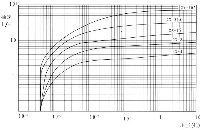 2x型雙級(jí)旋片真空泵性能曲線圖解讀 2X型旋片真空泵是一款應(yīng)用非常廣泛的真空泵產(chǎn)品,其理想的真空泵度,合理的價(jià)位,得到廣泛應(yīng)用。一個(gè)300L容積的真空罐,選擇2X-30型真空泵(抽氣速率30L/S)進(jìn)行抽真空,是不是10秒時(shí)間就能抽成真空? 讓我們對(duì)2x型雙級(jí)旋片真空泵性能曲線圖進(jìn)行解讀,看看是否10秒鐘就能抽完? |