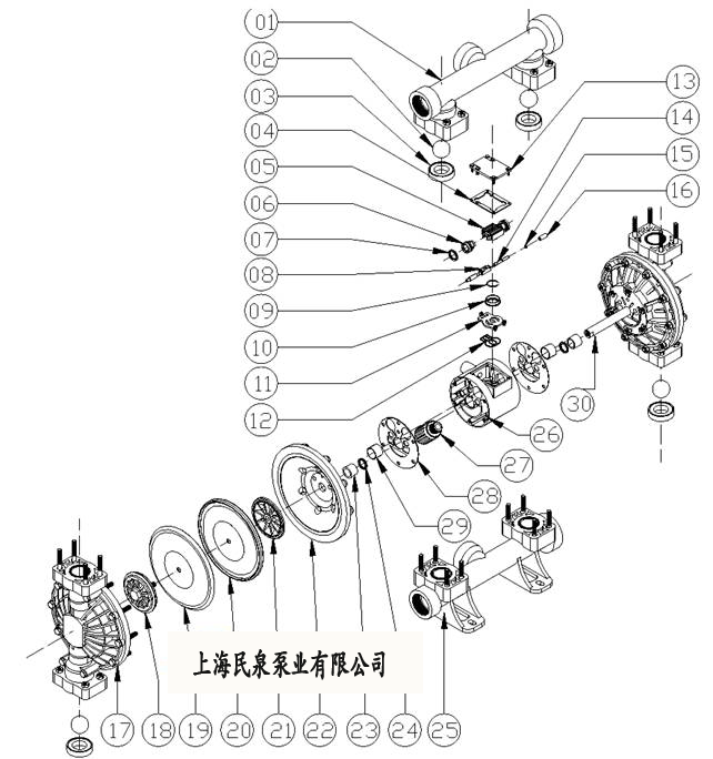 氣動隔膜泵結(jié)構(gòu)分解圖